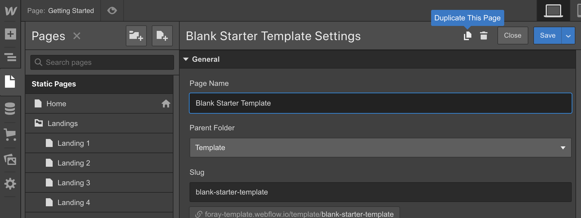 1. Dupliquez le modèle de page vierge
